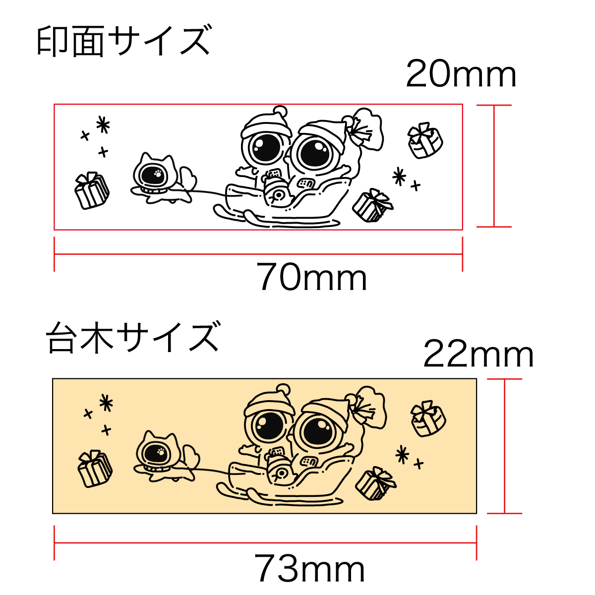 印面サイズは横約70mmのワイドタイプ。ハガキや封筒のすみにもバランスよく収まり、手帳のデコレーションやギフトラッピングのアクセントにもぴったり。文字のない図柄スタンプなので、他のスタンプと組み合わせてアレンジも自在です。